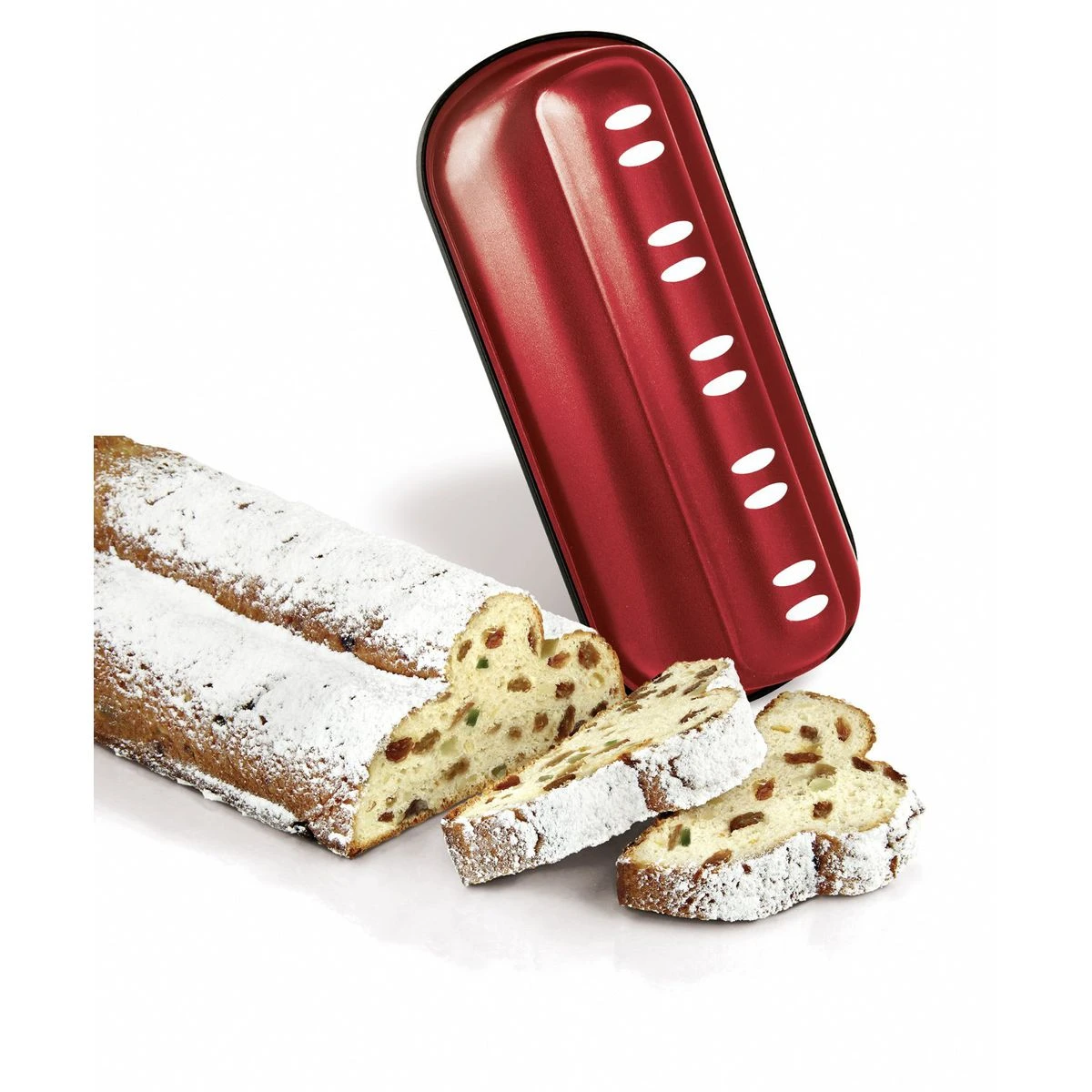 DESCRIPTION : Moule à stollen ou moule à bûche de Noël LE PETIT + : Une carte est à découper sur l’emballage du moule à gâteau pour nommer vos cadeaux de Noël une fois emballés COMPOSITION : Acier avec un revêtement ILAG antiadhérent DIMENSIONS : 31 x 15 x 7 cm CONTENU : 1 moule à stollen/bûche Ce moule à gâteau est un moule à stollen qui un gâteau typique de Noël. Le stollen est une brioche fourrée avec des raisins secs et de l’amande. Le stollen sera parfait pour vos goûters ou desserts de Noël et de l’hiver.