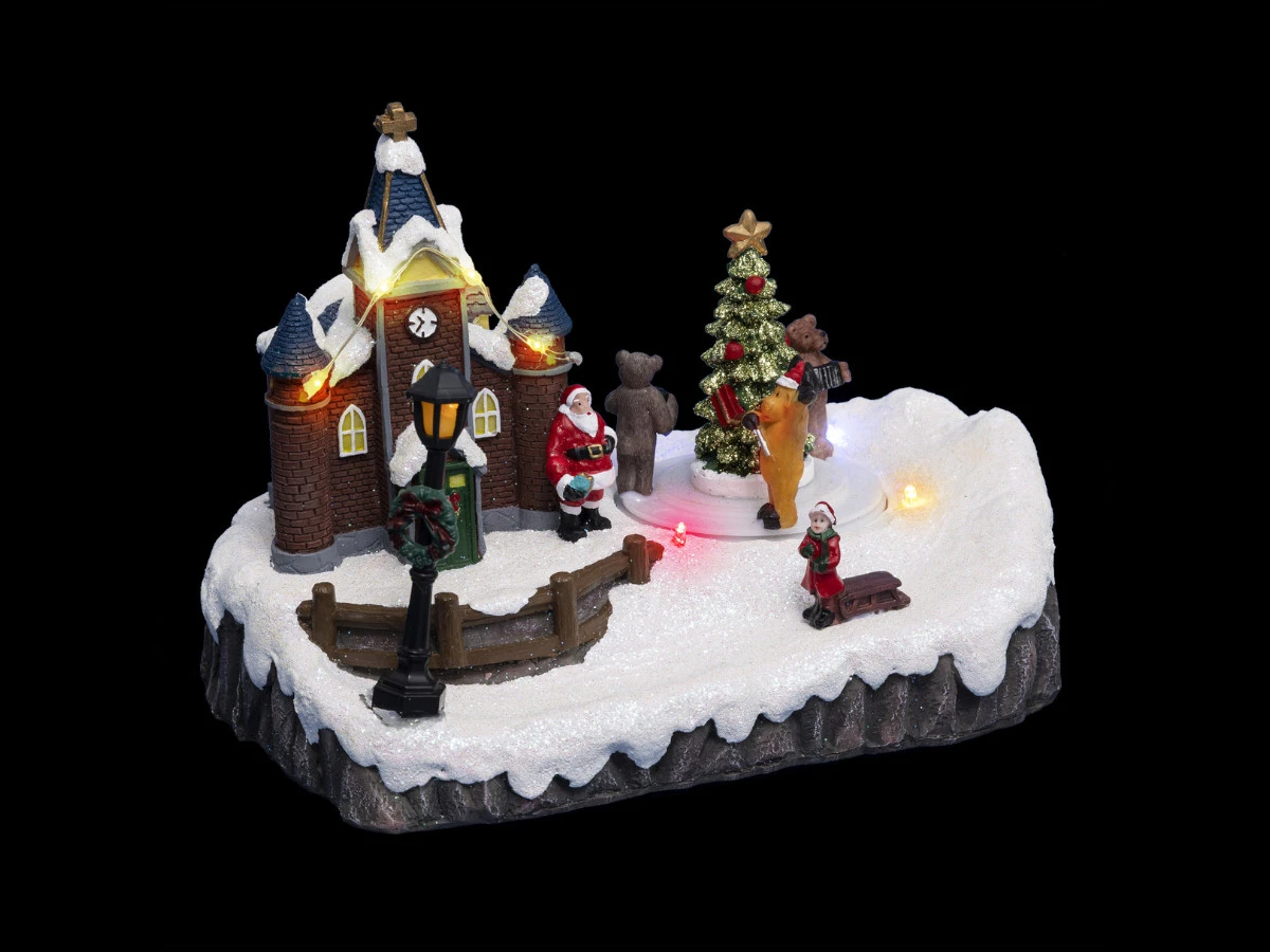 Chorale de Noël – Feeric Christmas – Village de Noël miniatureAjoutez à votre village miniature une adorable chorale de Noël, tout en mouvements et lumières. Une scène fabuleuse et entrainant pour apporter de la joie à votre décor des fêtes. Caractéristiques détaillées : •Couleur : Multicouleurs •Dimensions (L x l x H) : 23,5 x 14,5 x 17 cm •Matière : Polyrésine •Marque : Feeric Christmas •Fonctionne à pile, 3 x AA non incluses •Collection : Gamme village, En Laponie •Avec lumière : Oui •Avec musique : Non •Avec mouvement : Oui •Led : 8 led blanc chaud et multi •Effet de lumière : FixeAvec mouvement : OuiAvec musique : NonCollection : Gamme village En LaponieCouleur : MulticouleursDimensions (L x l x H) : 23,5 x 14,5 x 17 cmEffet de lumière : FixeGarantie : 2 ansMarque : FÉÉRIC CHRISTMASMatière(s) : PolyrésineNombre de LED : 8Pile(s) fournie(s) : NonType d’alimentation : A pilesType de déco : Village de NoëlType de pile(s) : 3 Piles AAUnivers : NoëlUtilisation : Intérieur