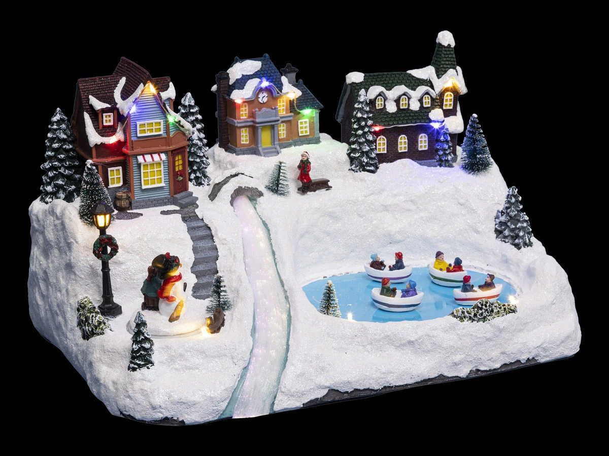 Village de Noël miniature – Feeric ChristmasComplétez votre village avec cet élément de déco lumineux tout en mouvement. Des maisons traditionnelles enneigées, un lac gelé sur lequel 4 bateaux naviguent. En regardant plus en détails vous pouvez apercevoir un joli bonhomme de neige, des sapins enneigés, une couronne traditionnelle….Adaptateur inclus : OuiAvec mouvement : OuiAvec musique : NonCouleur : MulticouleursDimensions (L x l x H) : 40,5 x 24 x 24,5 cmEffet de lumière : Fixe & Variation de couleurGarantie : 2 ansMarque : FÉÉRIC CHRISTMASMatière(s) : PolyrésineNombre de LED : 17Type d’alimentation : ElectriqueType de déco : Village de NoëlUnivers : NoëlUtilisation : Intérieur