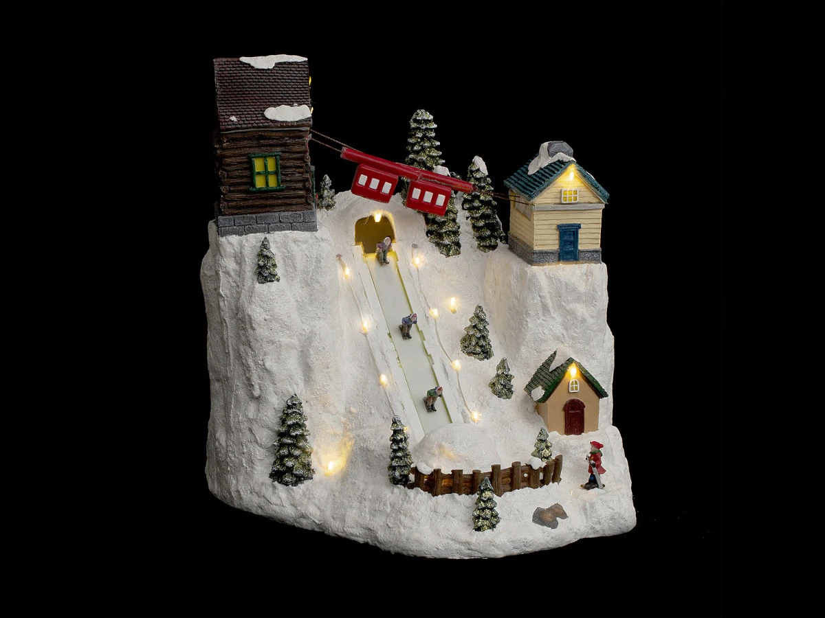 Les sports d’hiver sont à l’honneur cette année dans votre village de Noël. Pensez alors à lui intégrer une jolie piste de ski bien pentue ! Eclairée par des leds, vos petits skieurs descendent et descendent encore la piste enneigée. Un très beau spectacle animé, lumineux et même musical, signé Feeric Christmas.•Adaptateur inclus : Oui•Avec mouvement : Oui•Avec musique : Oui•Avec lumière : Oui•Collection : A la montagne•Couleur : Multicouleurs•Couleur LED : Blanc chaud•Dimensions (L x l x H) : 32,5 x 29 x 33,5 cm•Effet de lumière : Fixe•Marque : Feeric Christmas•Matière : Polyrésine•Type d’alimentation : Transfo 4,5V 1,35WAdaptateur inclus : OuiAvec mouvement : OuiAvec musique : OuiCollection : Gamme village, À la montagneCouleur : MulticouleursCouleur LED : Blanc chaudDimensions (H) : 33,5 cmDimensions (L x l x H) : 32,5 x 29 x 33,5 cmEffet de lumière : FixeGarantie : 2 ansMarque : FÉÉRIC CHRISTMASMatière(s) : PolyrésineNombre de LED : 18Type d’alimentation : ElectriqueType de produit : Village de NoëlUnivers : NoëlUtilisation : Intérieur